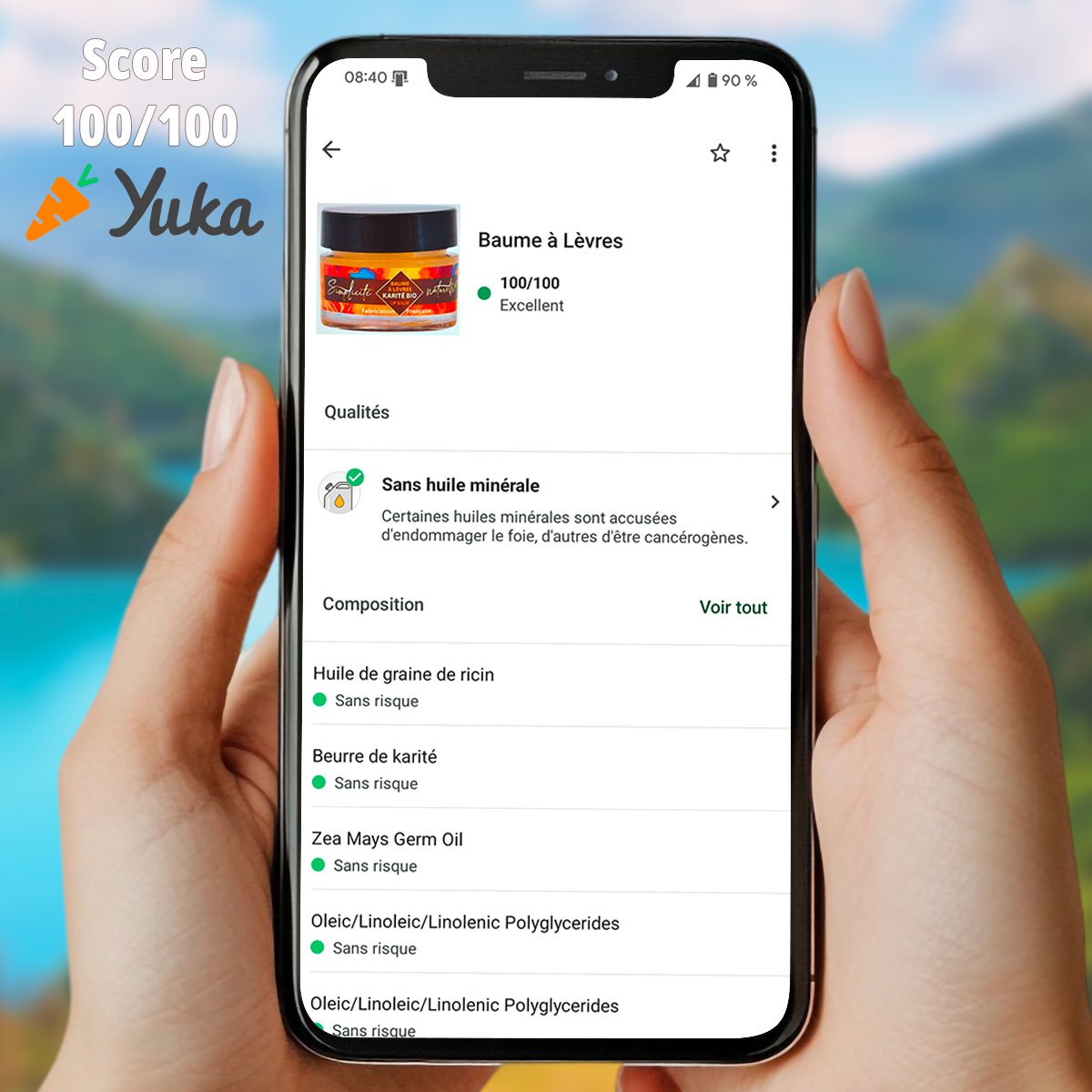 - La démarche d’être référencé sur Yuka permet à nos clients de s’informer clairement des ingrédients contenus dans nos soins.